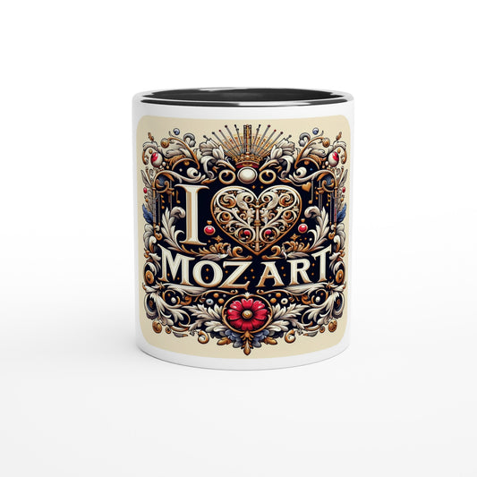 White 11oz Ceramic "I love Mozart" Mug with Color Inside
