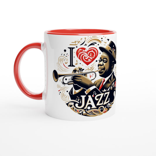 "I love Jazz" white 11oz Ceramic Mug with Color Inside